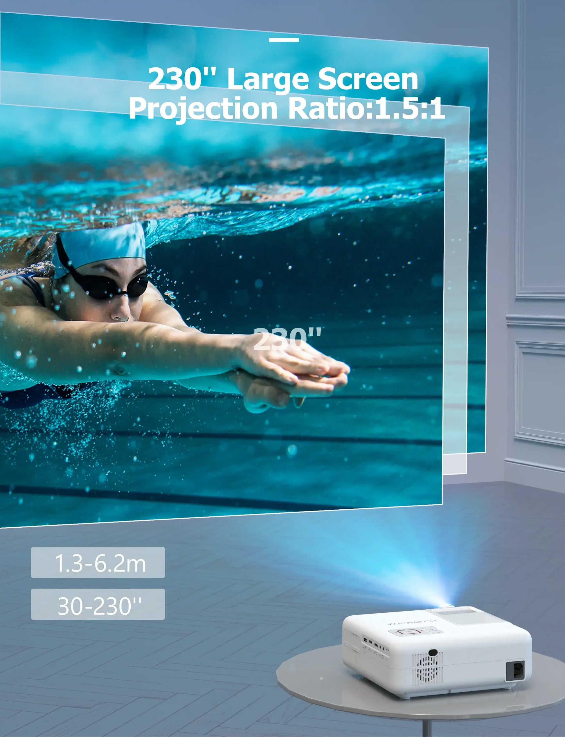 【Prise en charge 4K et Full HD】 - Profitez d'une expérience vidéo haute résolution avec la résolution native Full HD 1080p V53 Pro et la prise en charge 4K. Avec une taille d'écran de 30" à 230", ce projecteur de cinéma maison est parfait pour regarder des films, jouer à des jeux et bien plus encore.